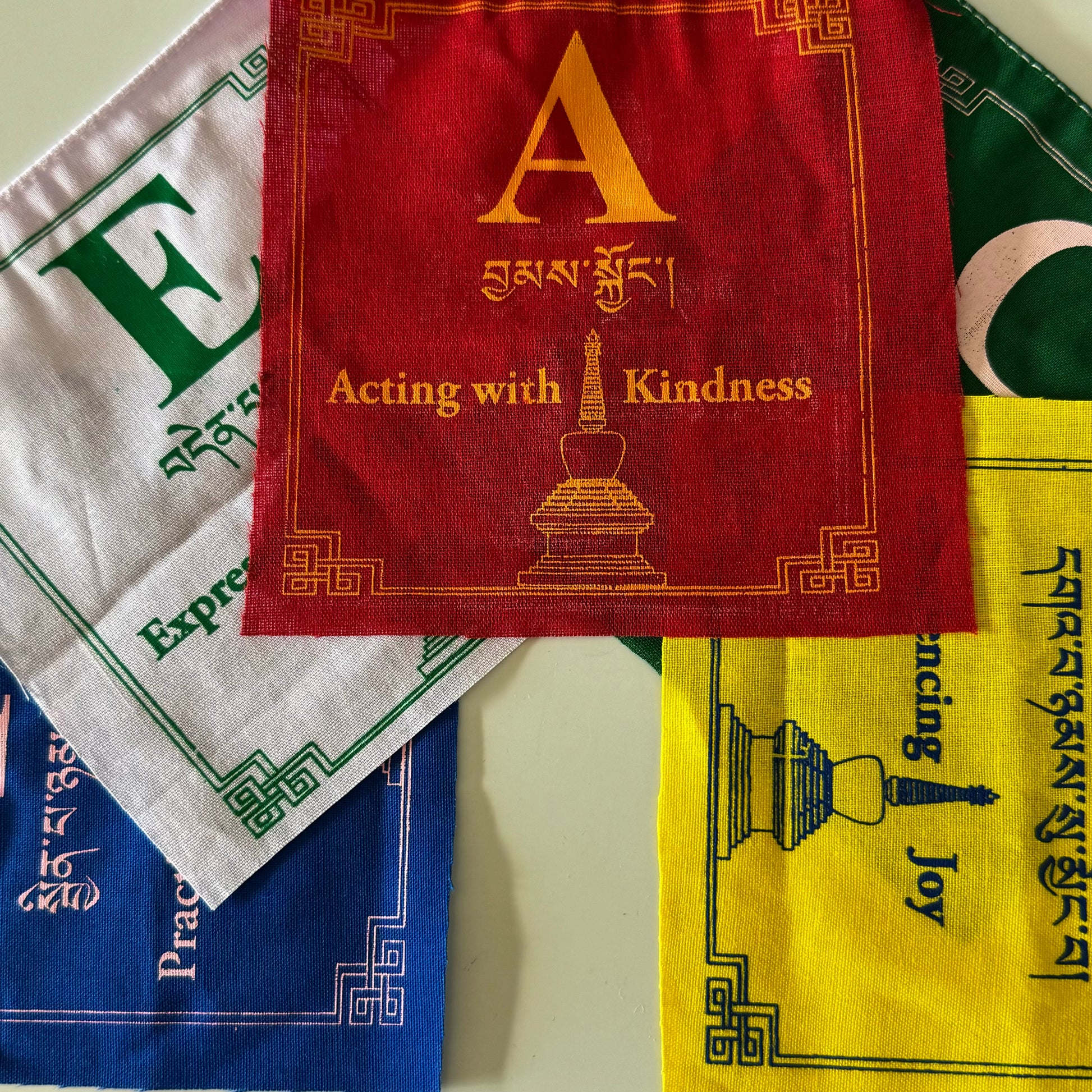 - Polyester prayer flags printed by the hands of Tibetan artisans in Kathmandu.
